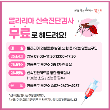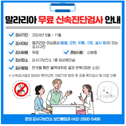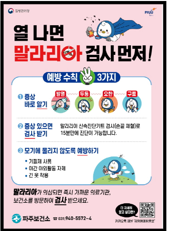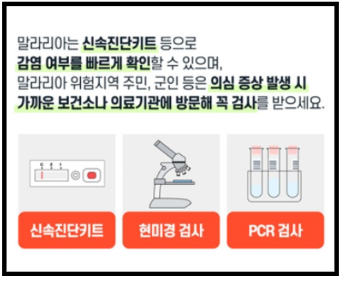 말라리아 검사에서 가장 널리 사용되는 방법 중 하나는 키트 검사입니다.말라리아 증세가 있다면 바로 집 주변 가까운 보건소로 가보세요!